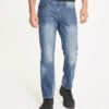 Straight denim jeans Dual zip pockets Signature icon Medium rise, sits low on hips Straight fit Dark denim wash with fading Each garment has its own unique appearance. Five-pocket construction Zip fly and button closures 10.5″ front rise. 14.75″ back rise. 14″ leg opening. 32.5″ inseam. Measurements taken from a size 3