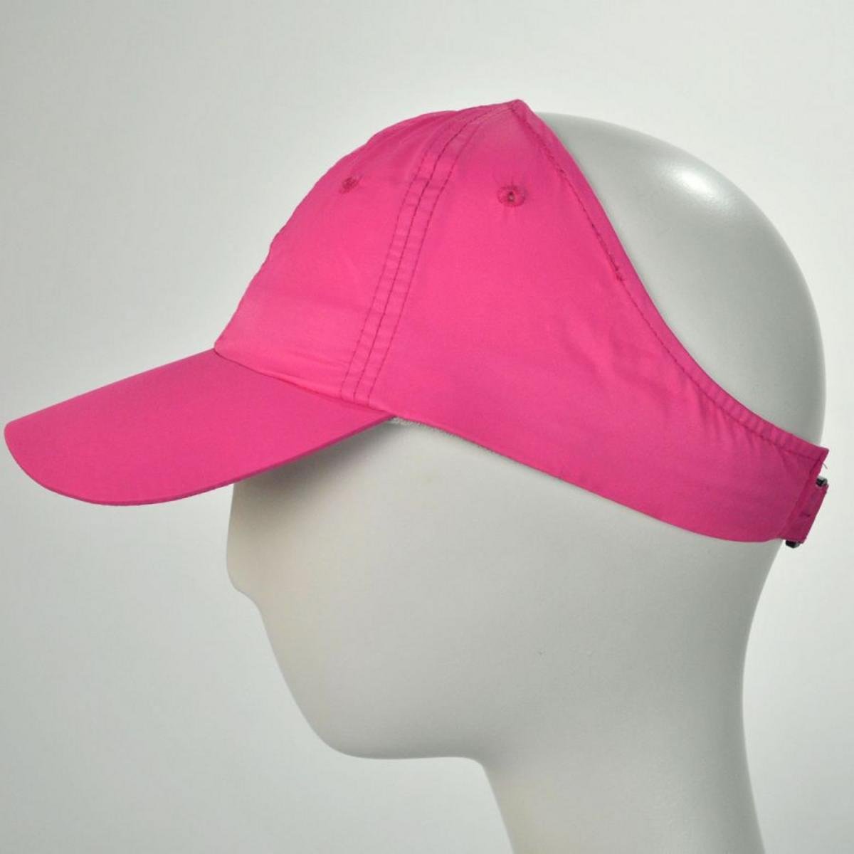 Ladies, are you tired of trying to fit your pony tail, french-braid and up dos into baseball caps? Village Hat Shop brings you the Genie Open Back Ponytail Baseball Cap by Chic Play! This baseball/visor hybrid cap is a terrific lightweight and cleverly designed sports cap made to accommodate your hairstyles. The large scoop cutout in the back and hook and loop adjustable strap provide the perfect fit and eliminates “hat hair”! Perfect for use during golf, tennis hat or any outdoor activity, the Genie Cap has you comfortably covered!