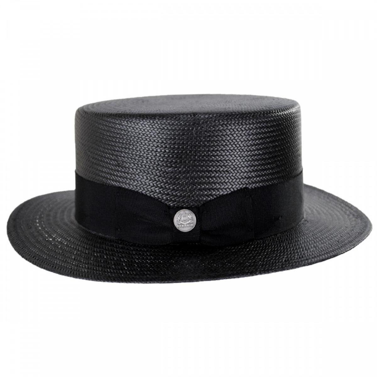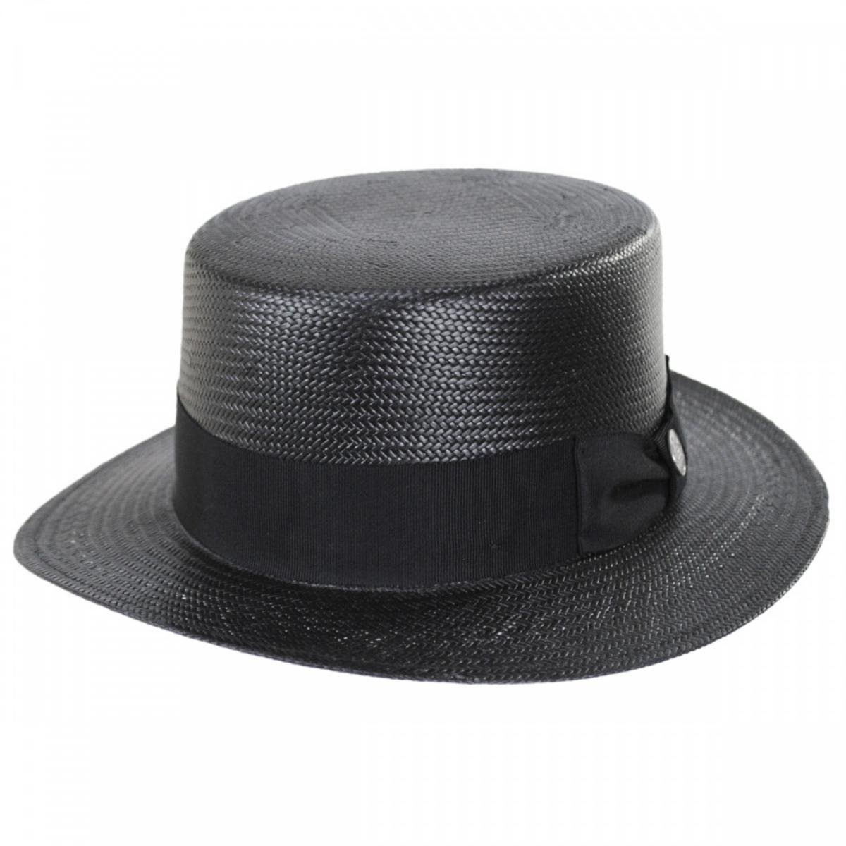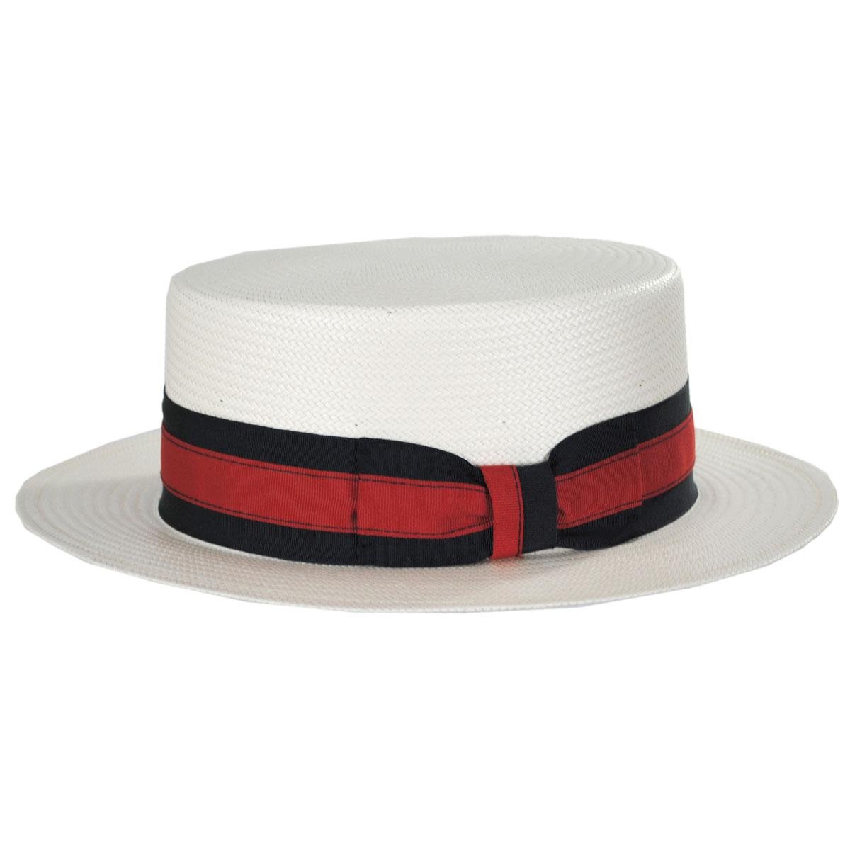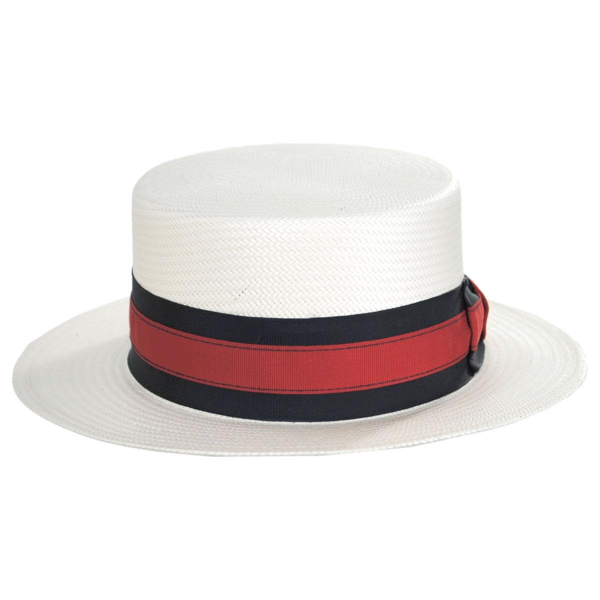 The Stetson Keeneland Shantung Straw Skimmer Hat is an updated version of the classic boater/skimmer seen on barbershop quartet singers, Harold Lloyd, Maurice Chevalier or fictional character Jay Gatsby. The durable and firm finish shantung straw is lighter than the traditional Koberg skimmer.