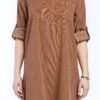 This flowy shirt dress is a feminine take on comfort and ease, thanks to its airy knit construction and waist tie. The front chest pocket adds a casual touch to this timeless essential. Women’s Midi Dress Length is 50 1/4″ Short Sleeves; Crew Neckline; Pullover Side Slits for Ease of Movement; Tie Detail at Waist Produ