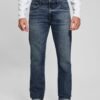 - Medium rise, sits at hips. Regular fit and straight leg.