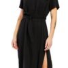 1Pc Sleeveless Mock Neck Cascade Ruffle Gown W/ Slit At Hem Navy